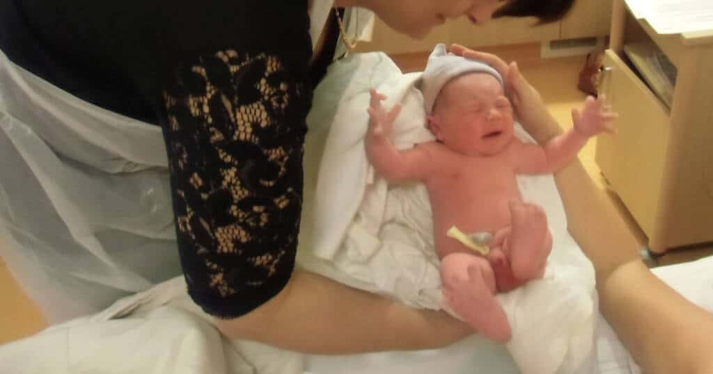 After the baby is born, the placenta follows. Via contractions the placenta detaches from the uterine wall. With a little help delivery of the placenta often happens within 30 minutes after the birth. It is a strange feeling but it does not really hurt. The uterus contracts and feels like a hard ball under your navel.